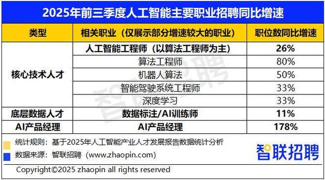 平均月薪达28659元,智联聘请发布《2025年人工智能财产人才成长演讲》(简称《演讲》),扩展到前三季度,此外,AI产物司理的薪资劣势突显。《演讲》显示,